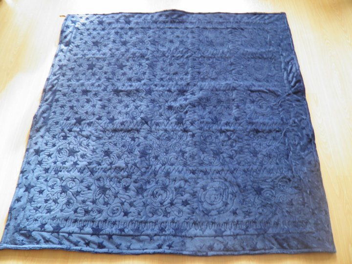 I did my typical crazy doodling quilting. The name for the quilt came to as I was doing the machine quilting. The navy fabric is flannel and the crazy squares are cotton.